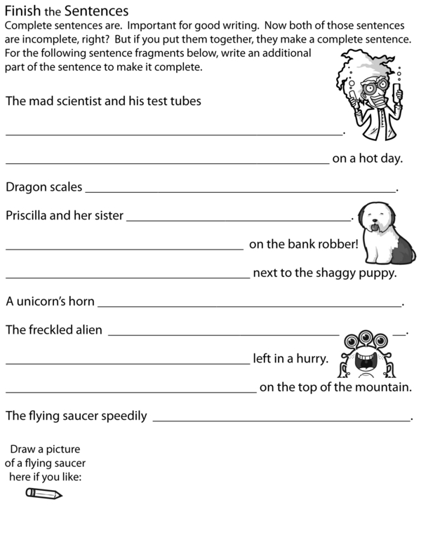 Creating Complete Sentences From Fragments: A Finish the Sentence Worksheet