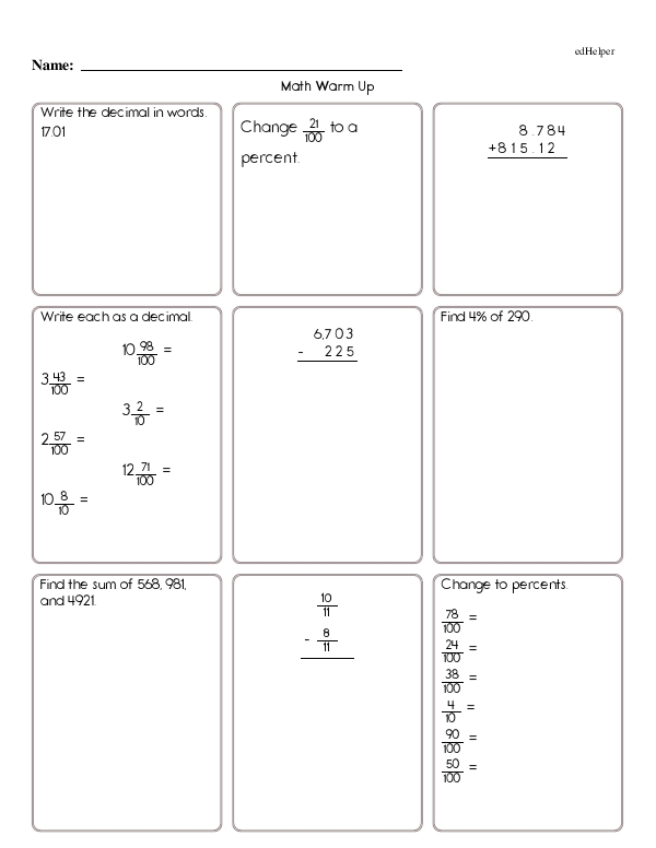 Mixed Skill Review for Decimals and Fractions