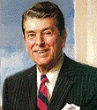 ____ W. ____, the 40th president of the United States, was the only actor to have been elected to that office. After he graduated from Eureka College he became a radio sports announcer. In 1937 he won his first Hollywood contract, and during the next 20 years he appeared in 53 films. As president of the Screen Actors Guild, ____ became embroiled in disputes over the issue of Communism in the film industry; his political views shifted from liberal to conservative. He toured the country as a television host, becoming a spokesman for conservatism. He served as governor of California from 1966 to 1974. When the Republican Party nominated him for the presidency in 1980, he chose former Texas Congressman and United Nations Ambassador George H. Bush as his running mate. Easily defeating President Jimmy Carter by 489 electoral votes to 49, ____ took office on January 20, 1981. Only 69 days later he was shot by a would-be assassin, John Hinckley, but quickly recovered and returned to duty. During the course of his first term, President ____ worked skillfully with Congress passing laws to spur economic growth, curb inflation, increase employment, and strengthen national defense. He was also passionately dedicated to cutting taxes and lowering government spending. In 1984, ____ and Bush won a second term with an extraordinary number of electoral votes turning away Democratic challengers Walter F. Mondale and Geraldine Ferraro. During his second term President ____ obtained a complete revision of the income tax code, which eliminated many deductions and exempted many people with low incomes from paying any taxes at all. His foreign policy included increased defense spending, negotiation with Soviet leader Mikhail Gorbachev to eliminate some classes of missiles, and the declaration of war on international terrorism. He ordered naval escorts in the Persian Gulf to maintain the free flow of oil during the war between Iran and Iraq. In keeping with his strong anti-Communist beliefs, he offered support to rebel groups in Central America, Asia, and Africa. The Iran-Contra Affair, a scandal that cost him some popular support, was the result of an arms for hostages deal arranged by Lieutenant Colonel Oliver North. His popularity gradually recovered, however. At the end of his second term of office, the United States was enjoying its longest record of peacetime prosperity and his goal of "peace through strength" seemed possible.