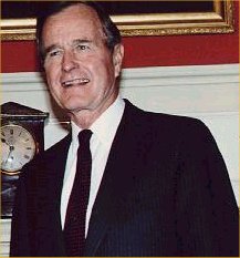 ____ was born on June 12, 1924, in Milton, Massachusetts, a suburb of Boston. In 1942, ____ enlisted in the United States Naval Reserve. At the age of 19, ____ became the youngest pilot in the Navy. On August 7, 1974, ____ delivered the letter that requested Richard Nixon's resignation. At the Republican national convention former President Ford was briefly considered for Reagan's running mate as a "copresident," but ____ was the final choice. For the first time in 60 years an outgoing president was succeeded by a member of his own party through an election, and ____ became the forty-first president of the United States. In December 1990, ____ secured UN Security Council approval of a resolution authorizing the alliance to use force to liberate Kuwait if Hussein had not withdrawn his occupation forces by Jan. 15, 1991. Less than 17 hours after the deadline, an international force led by the United States launched air and missile attacks on Iraq and Iraq-occupied Kuwait on Jan. 16, 1991.