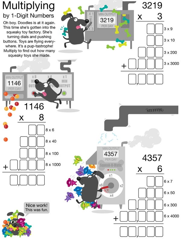 Watch out - Doodles, the puppy, is on the loose! In this engaging workbook, you'll see how Doodles is making a mess with factory productions. She is counting on you to use your multiplication and division skills to help clean things up. Are you up to the challenge?