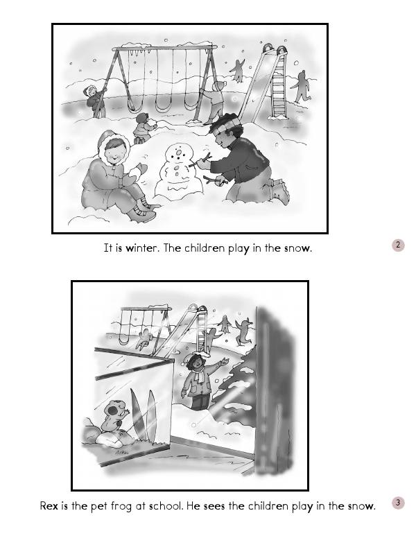 The story consists of 107 words. Some words that may be difficult for early readers include "winter," "children," "slide," "surprise," "puddle," and "dreams."