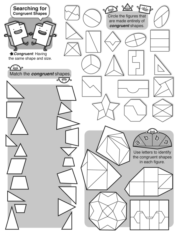 Ready to become an expert on congruent shapes? Great! First, start with a warm-up by looking at a pie chart and answering two questions. Then, dive into congruent shapes! Remember, they are identical in both shape and size. With that in mind, solve all the problems on page 2.