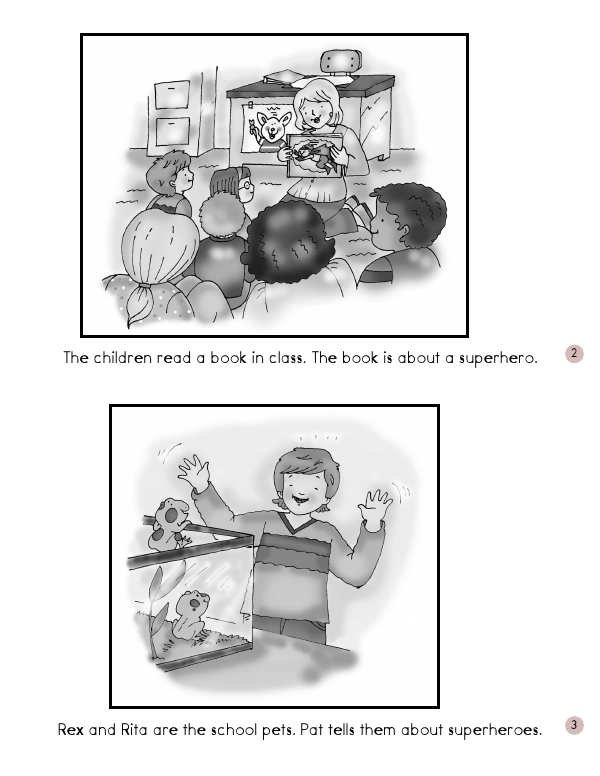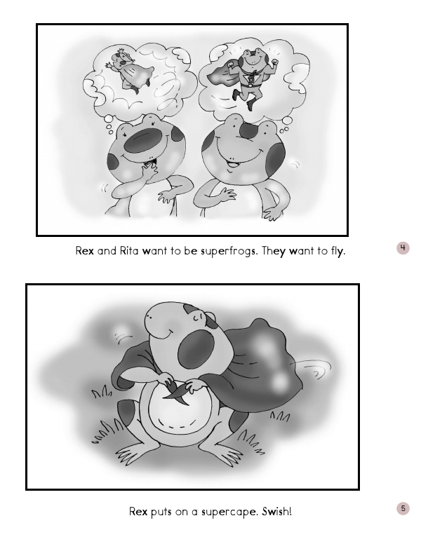 The story is 99 words long. Difficult words for early readers might include "superhero," "superfrogs," "supercape," and "window."