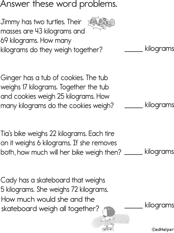 Wait, what's the weight? This workbook is all about solving weight puzzles. Read the scales, work through the word problems, and use your addition and subtraction skills to finish the challenge.
