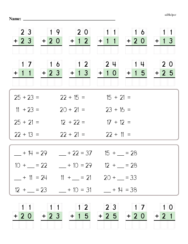 This math chapter workbook on "Addition and Subtraction to 40" helps students build the skills to understand and be fluent with numbers. This workbook provides ample practice with horizontal and vertical addition and subtraction problems and story problems to reinforce conceptual understanding and application. Throughout the chapter, emphasis is placed on developing mental math skills. Games and collaborative activities can further engage students and solidify their knowledge in a fun and interactive manner.