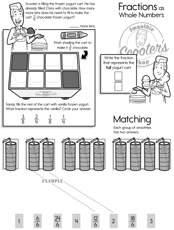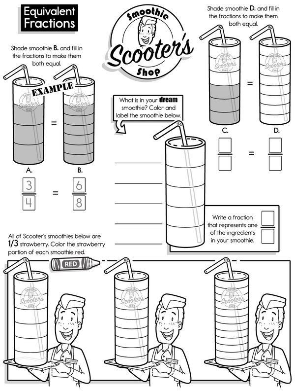 Welcome aboard! At Scotter's Smoothie, we take fractions seriously. The right fraction for each ingredient is what makes our smoothie so tasty! Since we use different kinds of cups, you'll also need to be quick with equivalent fractions. Follow along and explore the fun of fractions!
