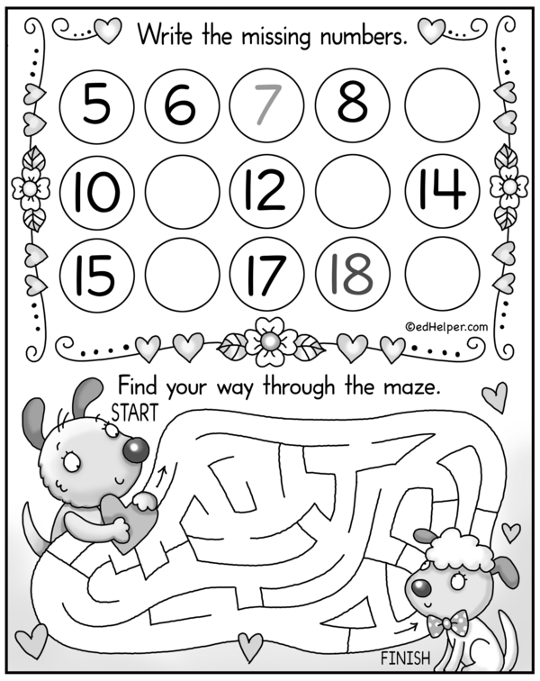 Ready for some fun Valentine puzzles? You'll match hearts, count items, fill in missing numbers, and find your way through a maze. Exciting, right? Grab your pencil and let's dive in!