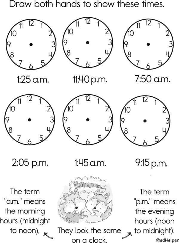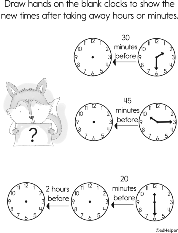 What time is it? This workbook is all about telling time. Practice reading and drawing clock hands to show the correct time. Learn to calculate new times by adding or taking away hours or minutes. Compare times and figure out how much time has passed. Ready to become a Time Master? Grab your pencil. 3-"2-"1, go!