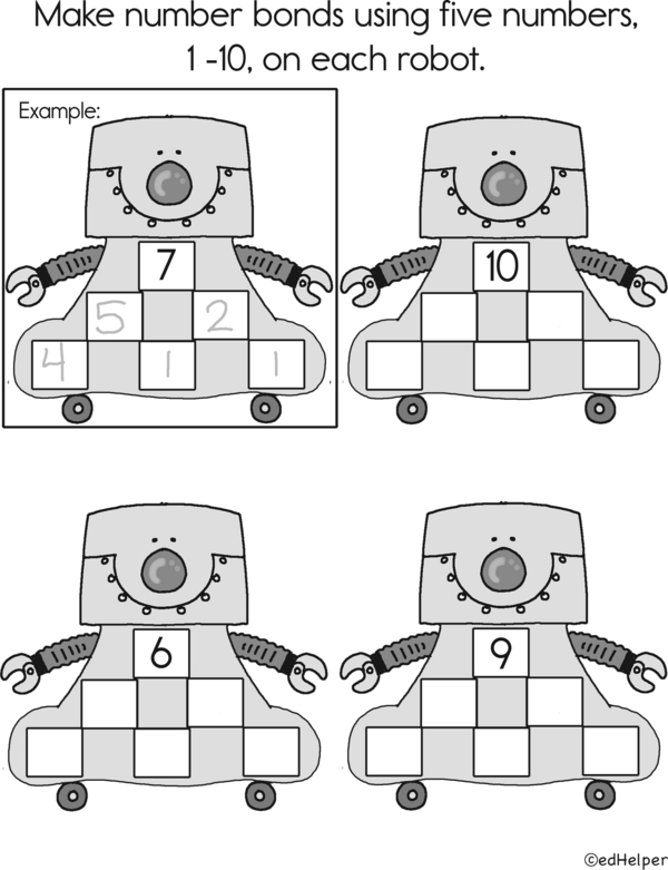 Let's practice number bonds! A number bond is like a number puzzle. You can split a big number into two smaller numbers or combine two smaller numbers to make a big number. This workbook will show you how to do it. Follow along and finish all the activities!