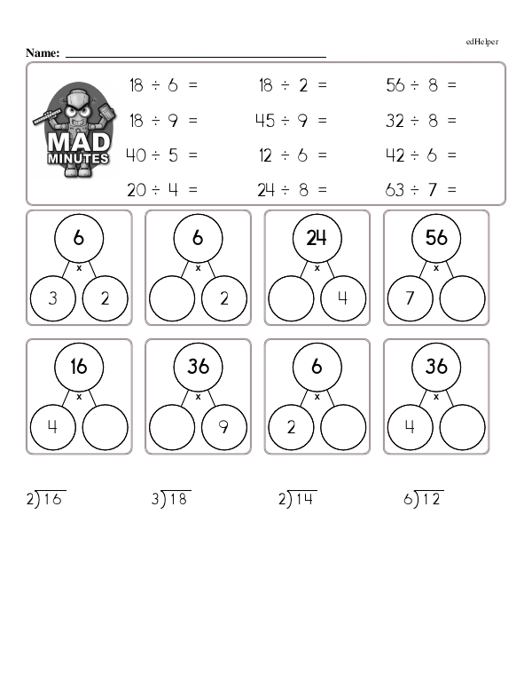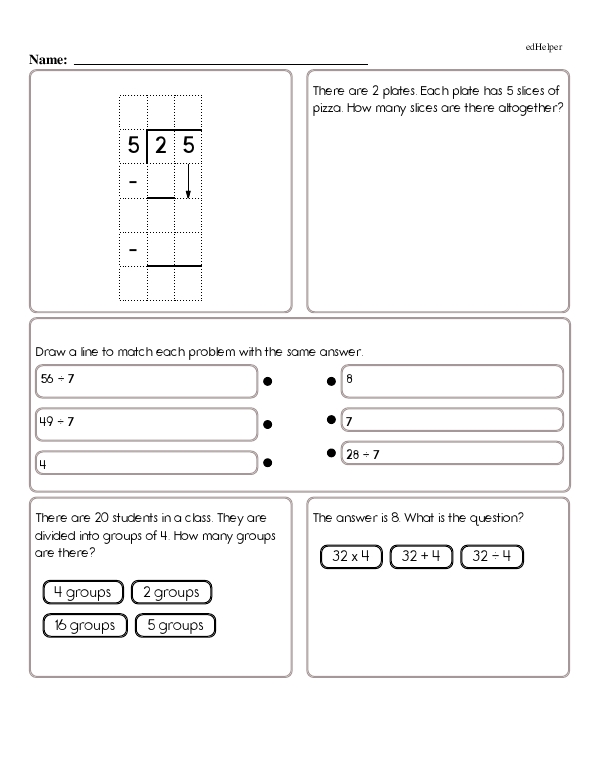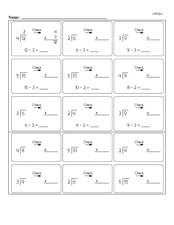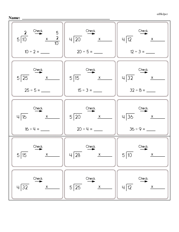 The workbook "division" continues practice to help students understand division as an inverse of multiplication and a method of distributing a set of items into equal groups. This workbook includes teaching students basic division vocabulary such as dividend, divisor, and quotient. Students practice dividing while solving straightforward problems and word problems that involve division. Essential skills include understanding the concepts of "remainder" in division, comparing division with repeated subtraction, and using estimation to verify the plausibility of their answers.