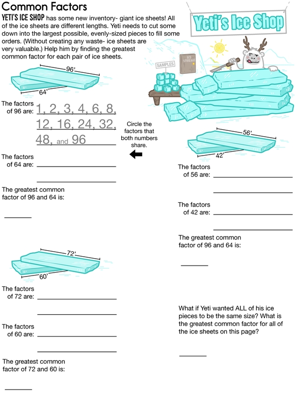 Posie and Yeti need your help to figure out the factors! Read the clues and solve all the questions. Quick, doughnuts and ice sheets are in high demand!