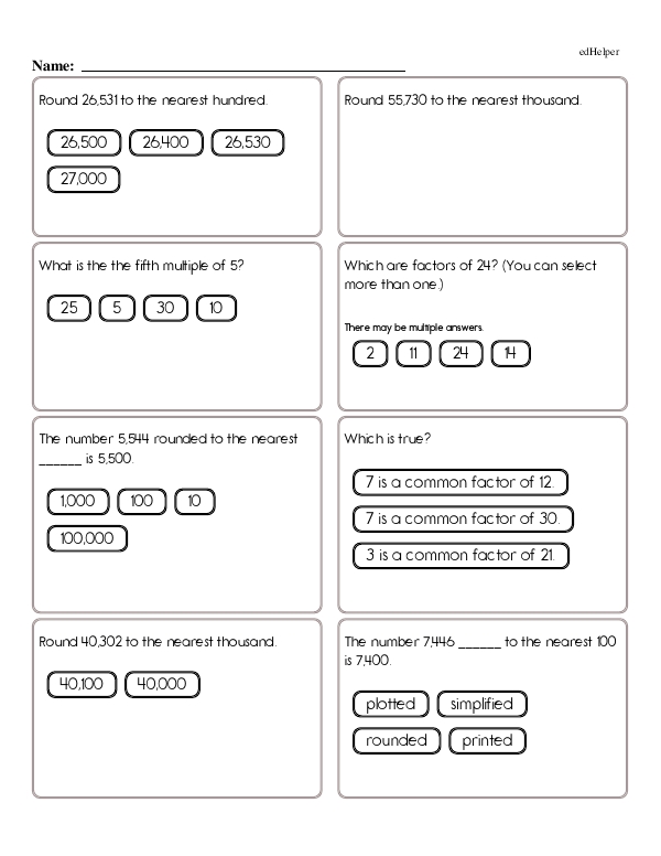 In this grade 4 math chapter on "Estimation and Number Theory," students will get practice on factors, multiples, prime numbers, divisibility rules, rounding, and estimation. Students learn to distinguish between prime numbers and composite numbers. They practice identifying all factor pairs of a given number and concepts such as least common multiples and greatest common factors. Identifying and extending numerical patterns practice will also help students recognize the regularity and structure within numbers.