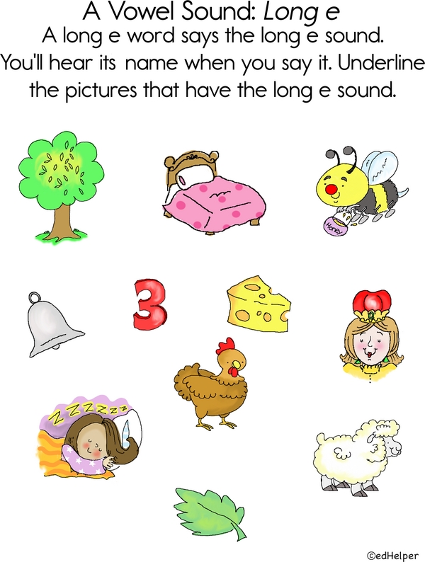 Ready to be a vowel detective? Your task today is to find the words that make the long 'e' sound! Look at each picture and sound out the word. If it has a long 'e' sound, draw a line under the picture.