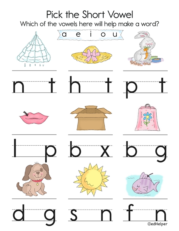 Look at these pictures! They all have short vowel sounds. But where are the vowels? Fill in the blanks to complete the challenge!