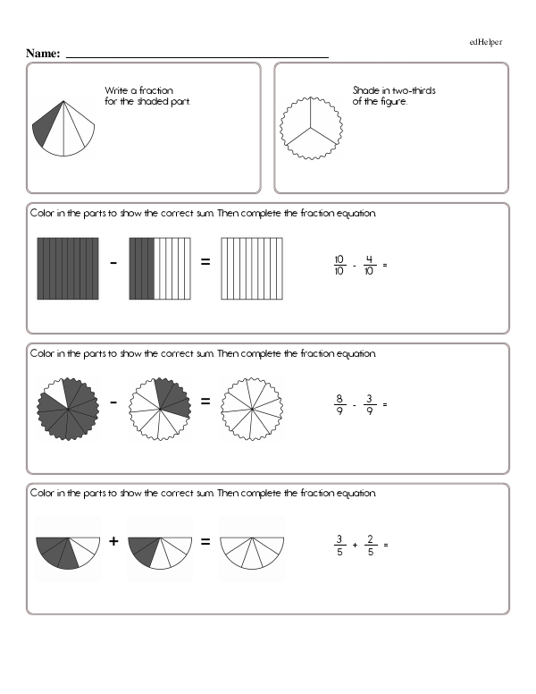 This workbook on "Fractions" for third graders helps students begin to develop a foundational understanding of fractions, focusing on recognizing and understanding fractions as parts of a whole and comparing and ordering simple fractions. Pages are included to reinforce these concepts, such as visual representations of fractions using shapes like circles and rectangles, exercises for identifying and comparing fractions, and problems that involve simple addition and subtraction of fractions with like denominators.