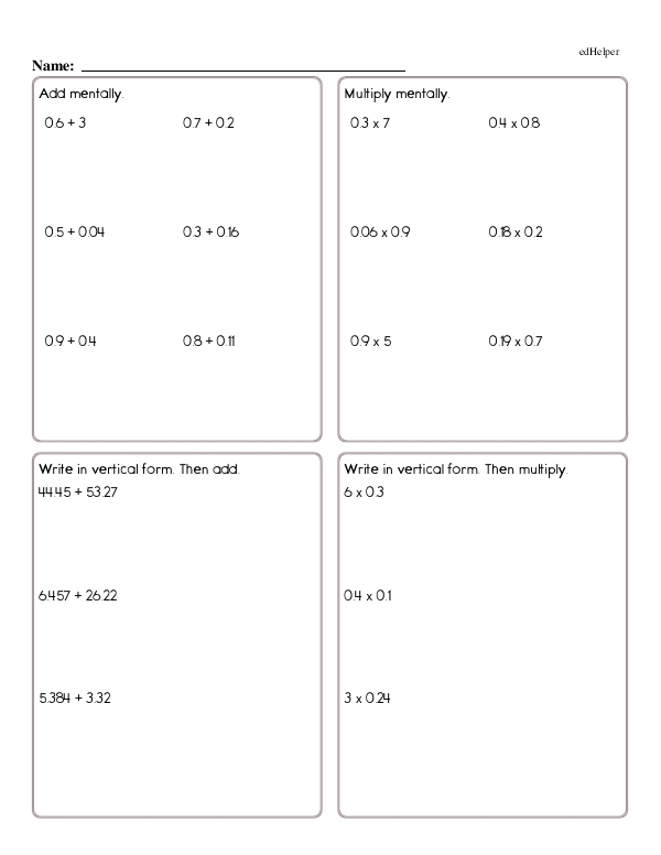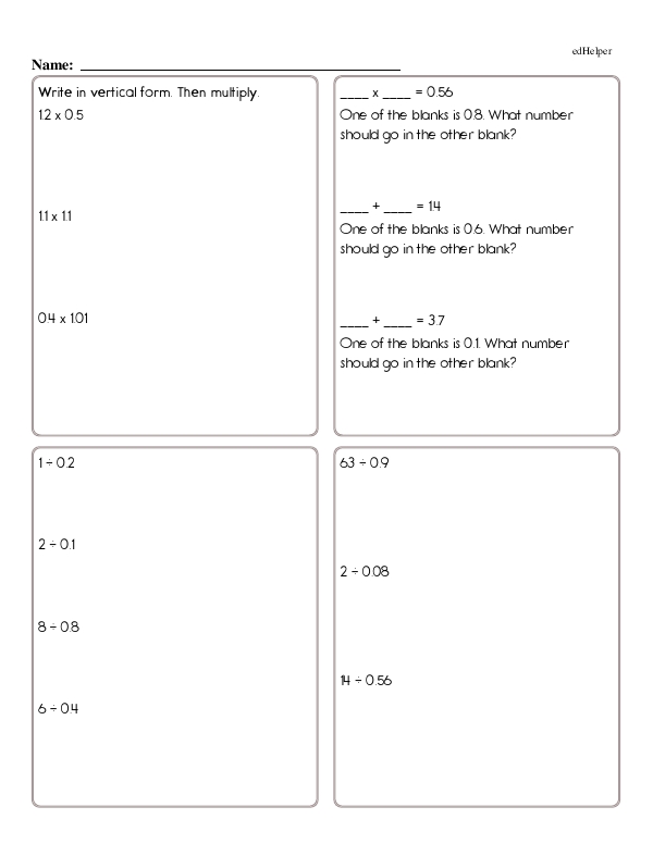 A problem could ask students to convert the fraction 3/4 to a decimal by dividing the numerator by the denominator, resulting in 0.75. Another example is comparing 0.6 and 2/3 by converting 2/3 to a decimal, giving approximately 0.666, thus determining that 2/3 is greater than 0.6. Students could also practice adding fractions like 1/2 and 1/3 by finding a common denominator (6), resulting in 3/6 + 2/6 = 5/6.