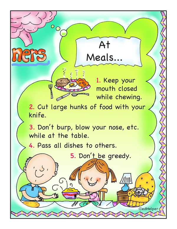 Make great use of this 'Mind Your Manners' poster pack to show kids how to be respectful, courteous, and considerate wherever they go. Each quadrant offers five helpful tips on what good manners look like at home, at school, at a friend's place, and during meals. Hang it up to spark conversations and inspire kids to put these simple, thoughtful actions into practice every day.