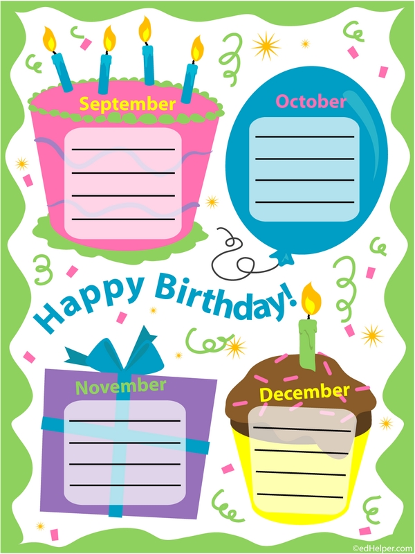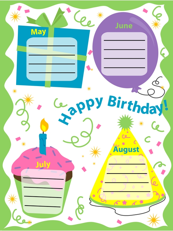 Use this kit to celebrate your students' birthdays! Each poster features four months, with plenty of space for every kid's name and birthday. Display them on the bulletin board for all to enjoy, and let this cheerful decoration make your classroom feel warm, welcoming, and full of joy.