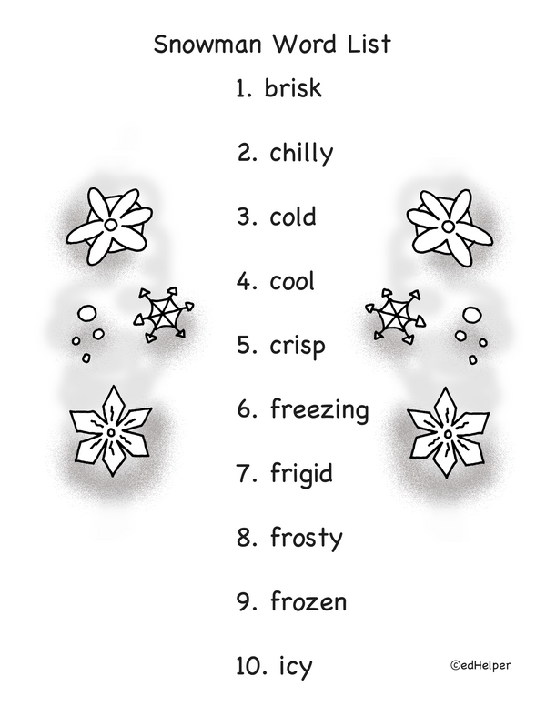 Say what? Bring your classroom to life with this creative writing activity! Each student picks a word from the list and turns it into a sentence their snowman is saying. When finished, turn your classroom into a snowy gallery to celebrate your students' creativity!