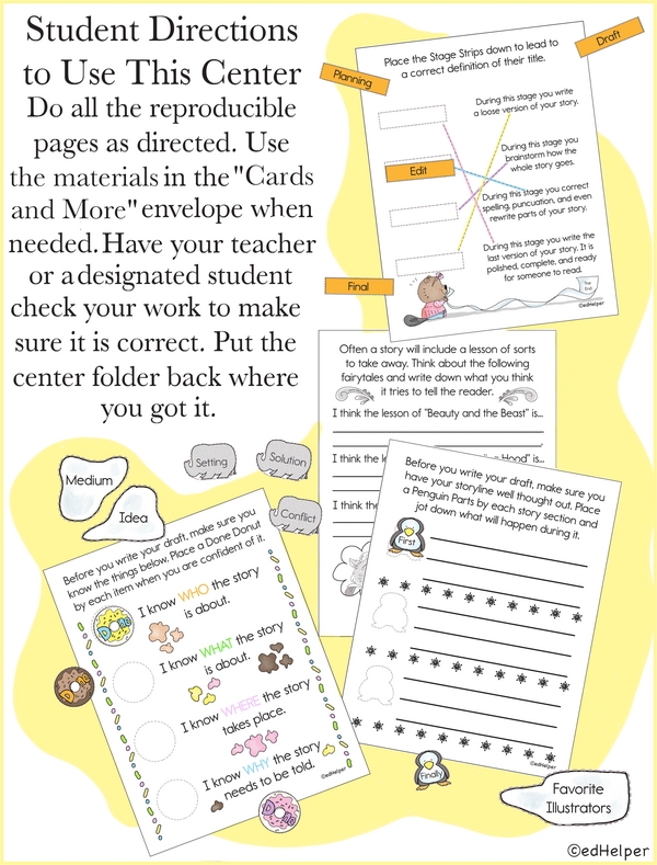 Let's get crafty with story structure! Use the materials in the envelope to explore what it takes to make a story. Think about the lessons from three famous fairytales. Then write a draft of your story, plan a picture, and bring both to the finish line!