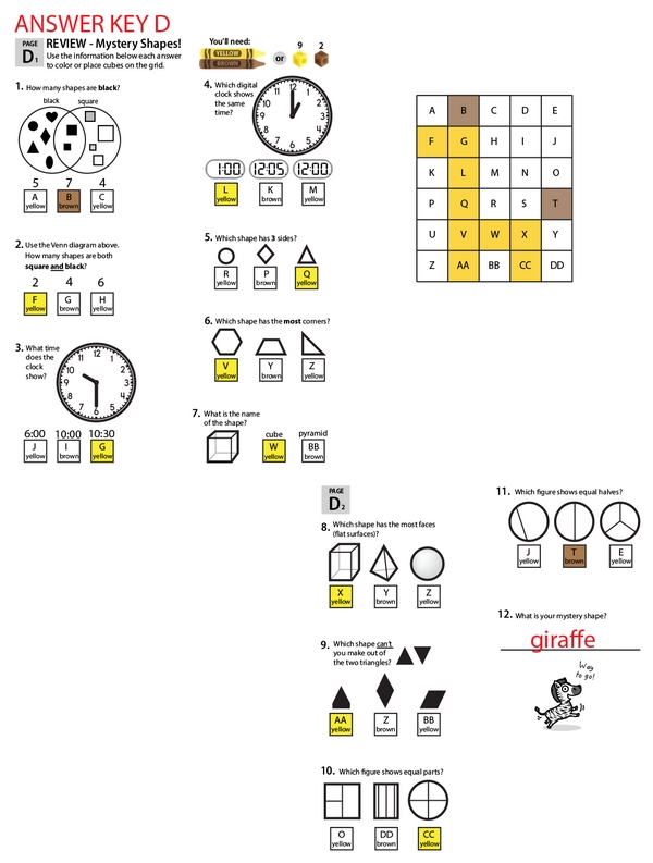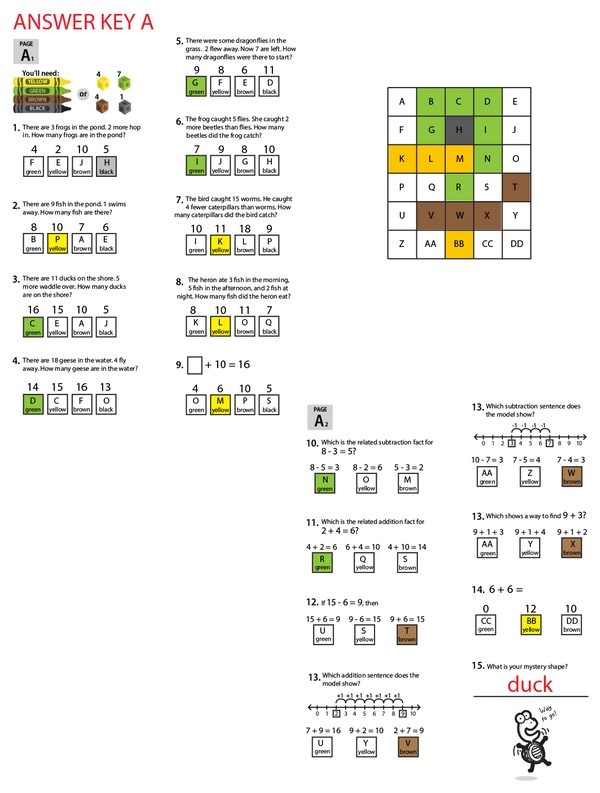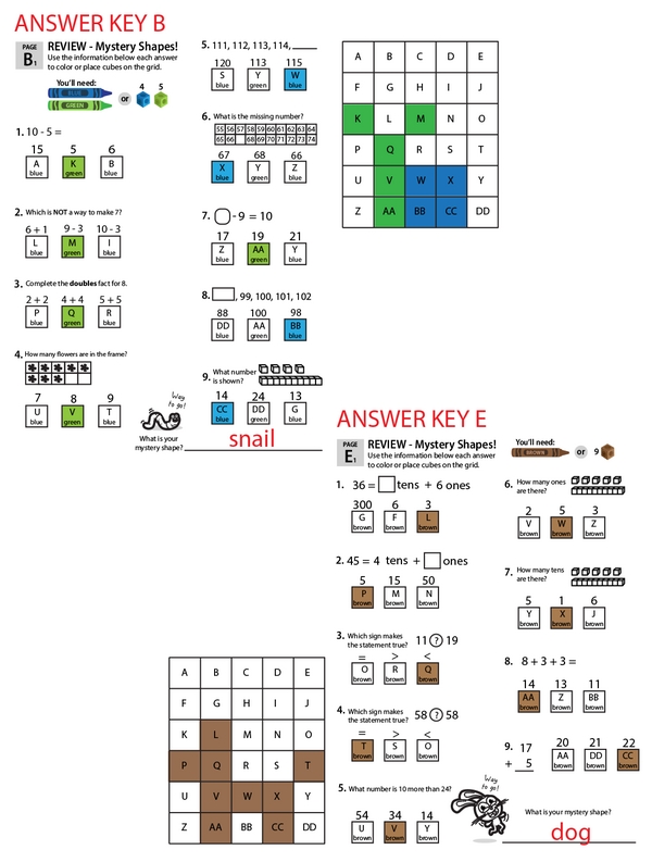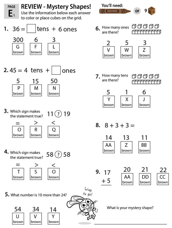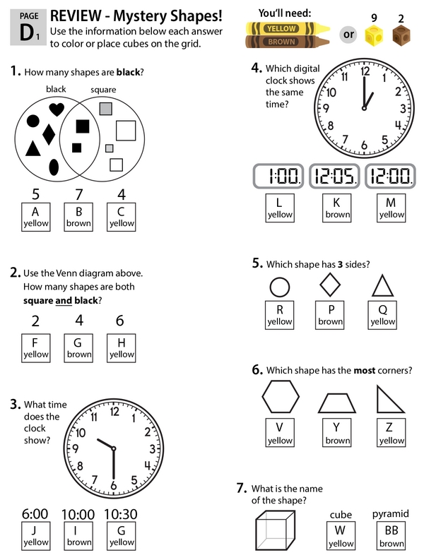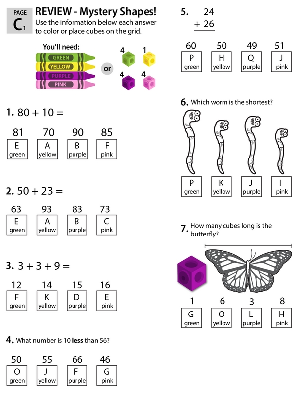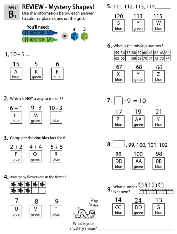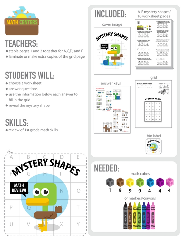 This learning center is your one-stop 1st grade math review shop. As kids solve each problem, they color the grids to reveal the mystery shapes.