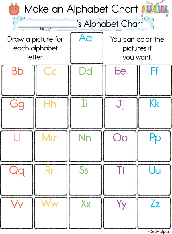 Get ready to make your own alphabet chart! Draw a picture for each letter, like an apple for the letter A. This fun activity helps you practice letters and match them with words.