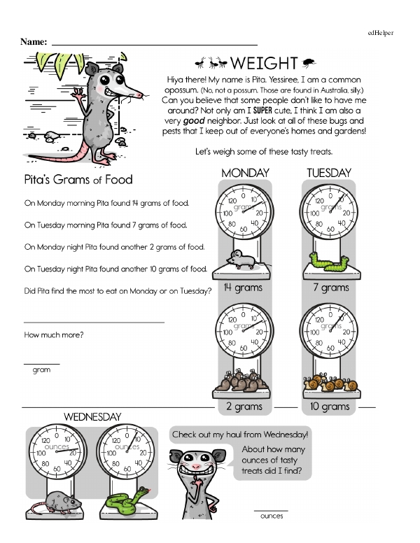 This math chapter workbook on "Mass" helps students understand and compare the weights of different objects. Workbook problems include scenarios where students compare the weight of everyday objects. For example, a problem might present images of an apple and a watermelon, asking the student to circle which is heavier. To solve this, students can use visual cues or prior knowledge about these fruits' size and typical weight. Problems also ask students to order objects by mass, such as lining up a pencil, an eraser, and a notebook from lightest to heaviest.