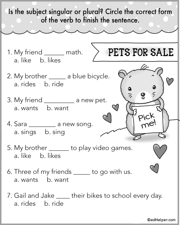 In these worksheets, kids practice circling the correct verb form to finish the sentence.