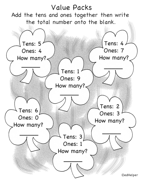It's math spring training time! Fill in the missing numbers to make 10. Figure out if each number on a jersey is odd or even. Add the price tags. Tally the scores. Which team won? Then, practice place value. How many tens and ones do you see? Write the numbers to match.