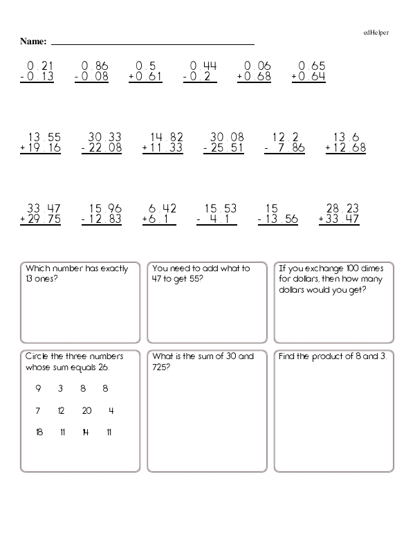 Number Bonds Mixed Addition and Subtraction Mixed Multiplication and Division Order of Operations