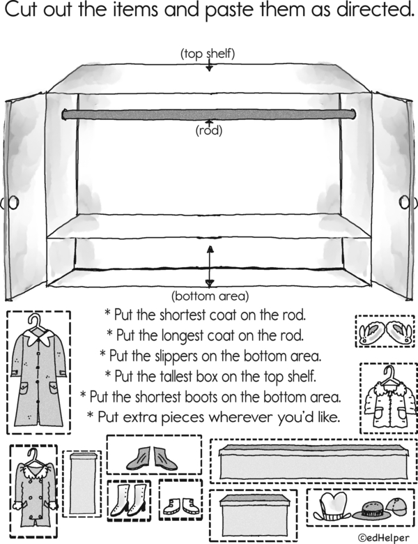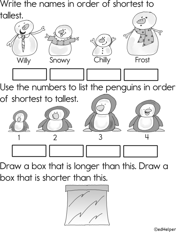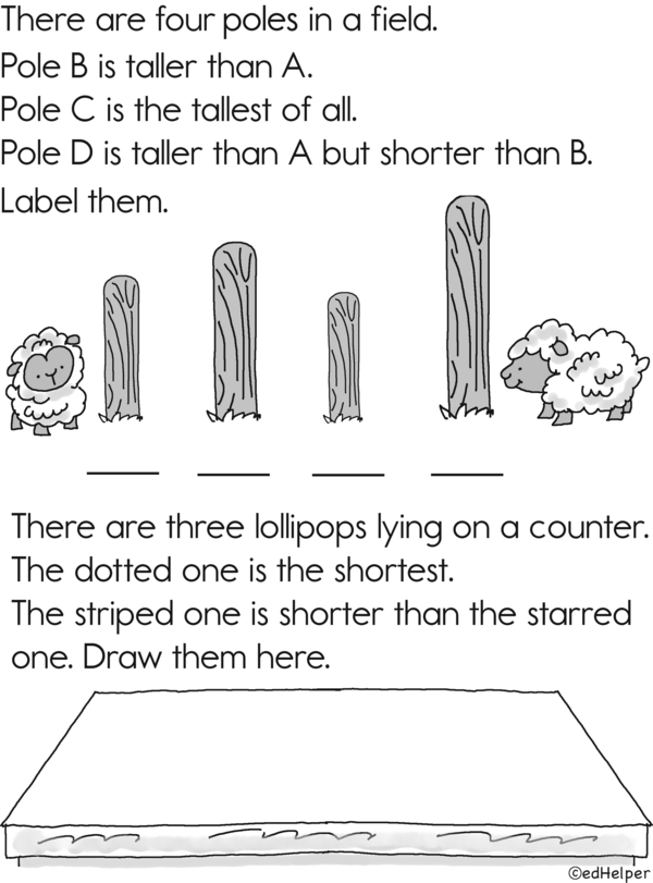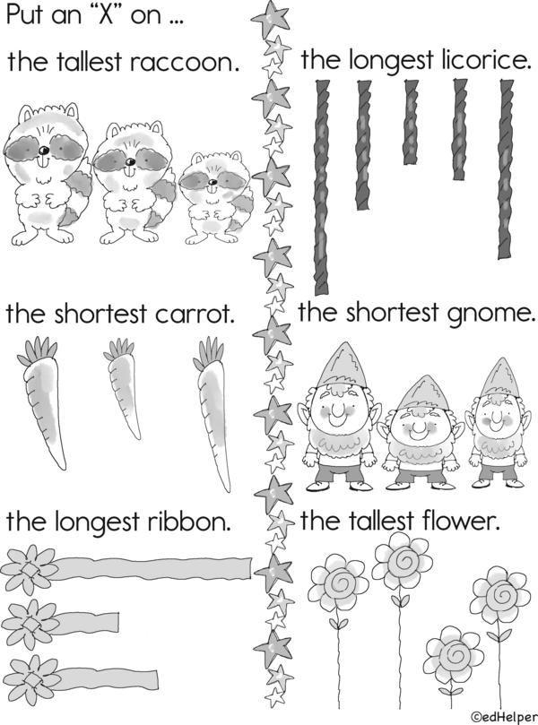 Measuring and sorting help us make sense of the world. As you work through each page, you'll compare and measure different objects. You'll also study the clues to sort and arrange things in the right order. Grab your pencil, crayons, scissors, and glue stick. Follow the directions and solve them all!