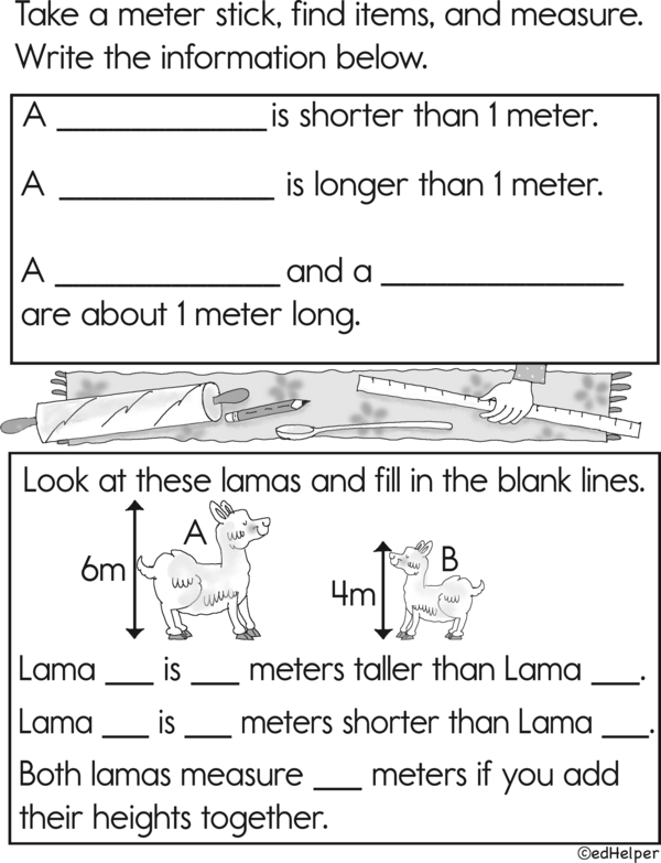 It's measuring time! And guess what? You'll be measuring using the metric system. That means no inches or feet, only centimeters and meters. Now, read the clues and solve all the problems!