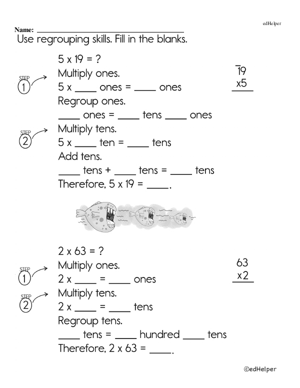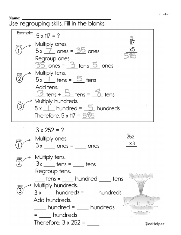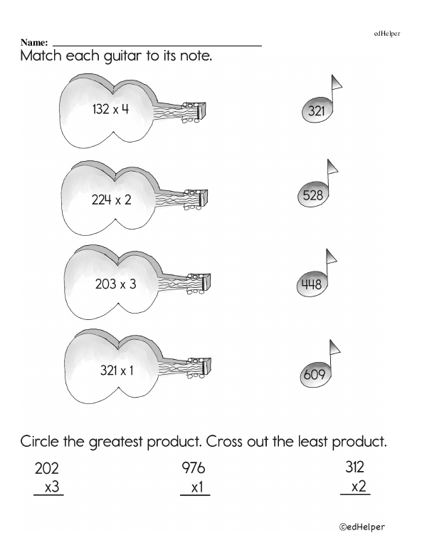 This third-grade math workbook focuses on multiplication with one factor larger than one digit. Students will practice multiplying single-digit numbers by multi-digit numbers. They will need to master the standard algorithm for multi-digit multiplication. This involves understanding place value, regrouping (carrying), and properly aligning numbers in columns to ensure accurate addition and multiplication during calculation. Visual aids like place value charts or arrays help students grasp the concept. Real-world word problems in this workbook illustrate practical applications as students master their multiplication skills.