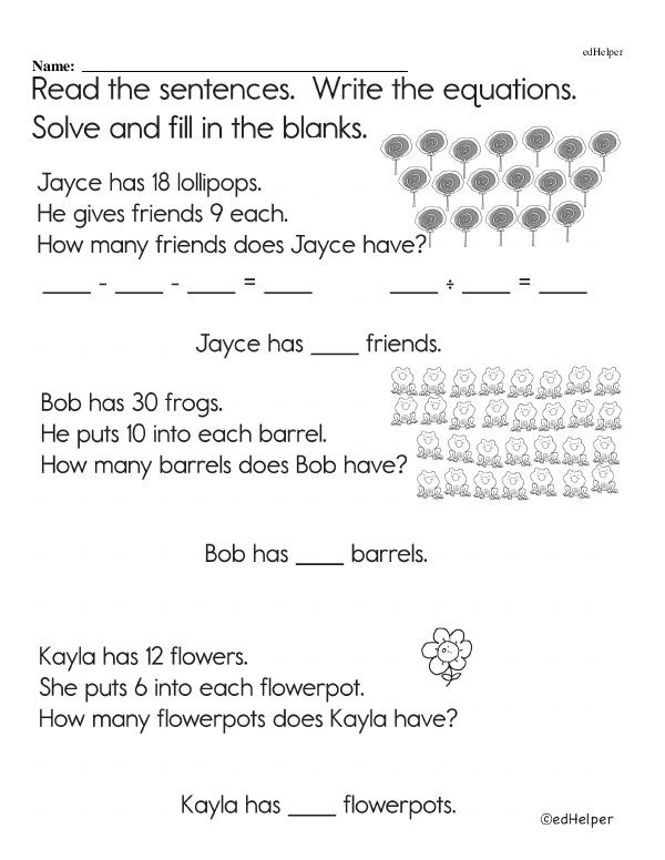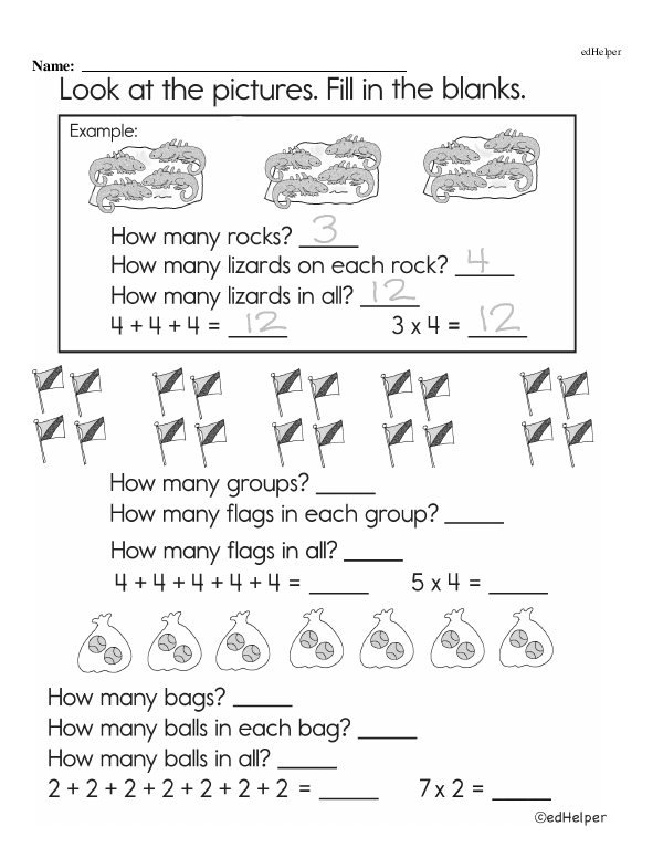 Students will encounter problems that involve simple multiplication and division using small numbers. For instance, a multiplication problem might ask: "If you have 3 baskets with 4 apples each, how many apples do you have?" To solve this, students would learn to multiply 3 (baskets) by 4 (apples per basket) to get 12 apples. Alternatively, a division problem might state: "You have 12 candies and want to share them equally among 3 friends. How many candies will each friend get?" Here, students should divide 12 (candies) by 3 (friends) and find that each friend receives 4 candies.