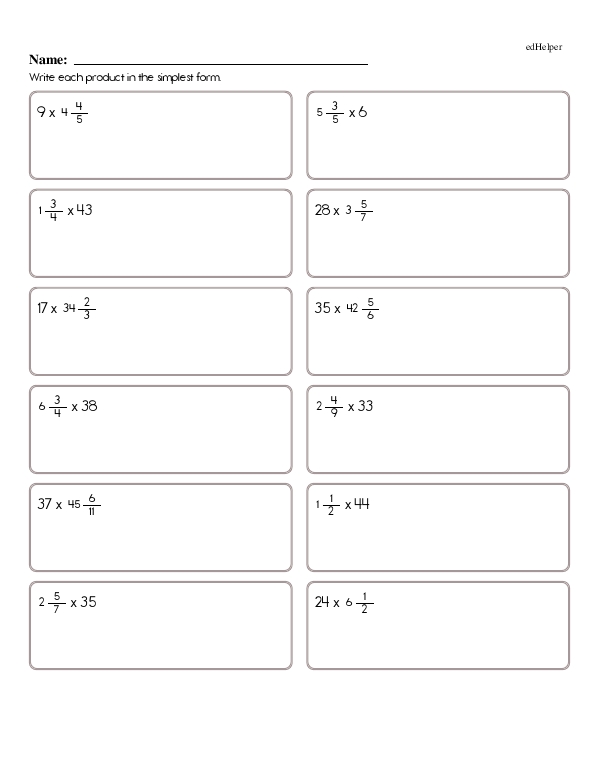 In this math chapter workbook on "Multiplying and Dividing Fractions and Mixed Numbers," students engage in plenty of practice problems, including word problems that apply these operations to real-world scenarios. This math chapter on multiplying and dividing fractions focuses on developing students' skills in handling fractional operations, aligning with core educational standards typically covered in middle grades. Students will learn to multiply fractions by multiplying their numerators and denominators and understand simplifying the results when possible. Dividing fractions involves multiplying by the reciprocal, reinforcing the relationship between division and multiplication. Core standards emphasize reasoning with fractional quantities, visual models, and word problems to apply these operations in real-world contexts.