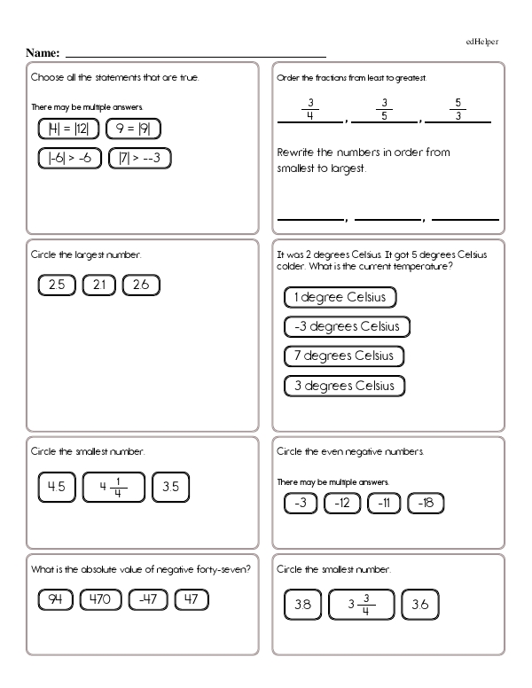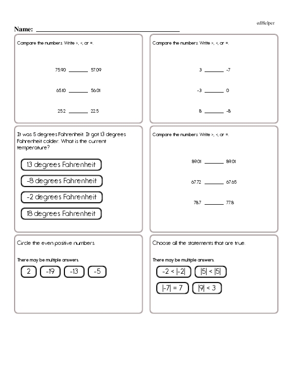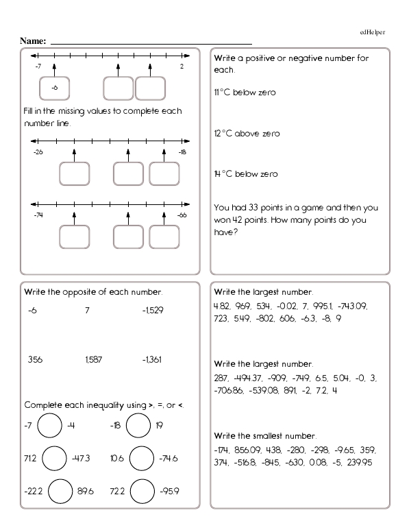 This math chapter workbook on "Number Lines and Negative Numbers" gives students practice in correctly placing and identifying integers on the number line. The teacher should introduce negative numbers, explaining their practical applications and real-world contexts, such as temperature or elevation, which can be below zero. Additionally, students will gain practice in comparing and ordering integers using the number line.