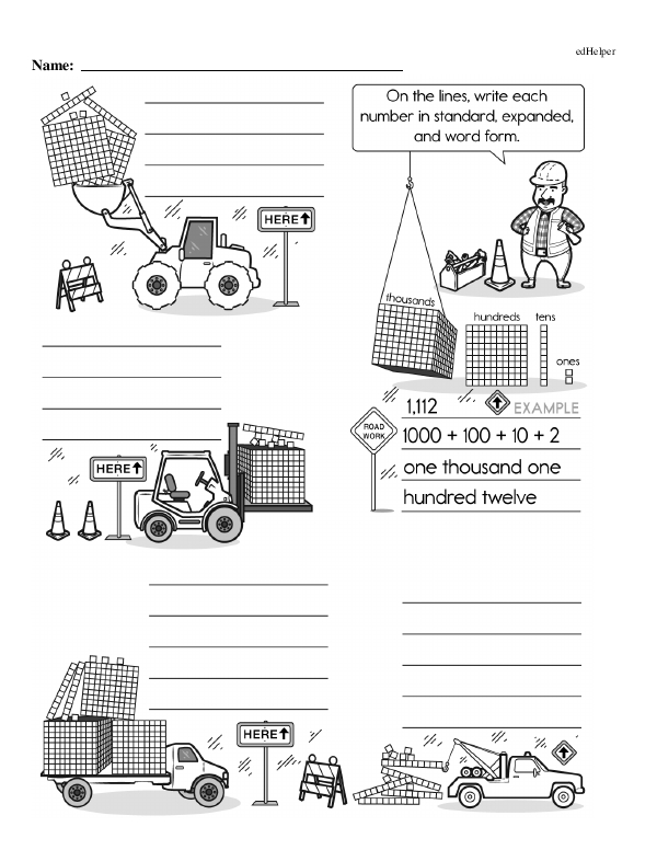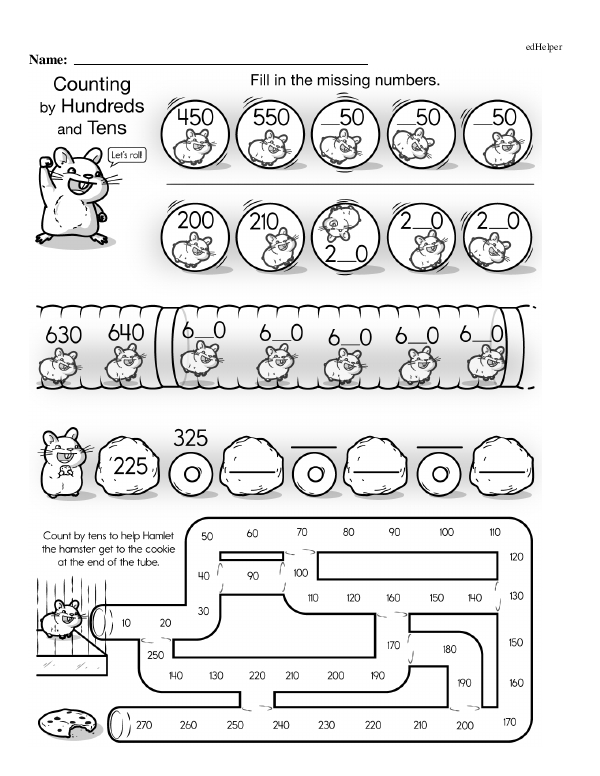 The workbook "Numbers to 1,000" reviews basic counting skills and then introduces the concept of hundreds, in addition to tens and ones. This will help students grasp how numbers are composed and decomposed. Lessons cover reading and writing numbers up to 1,000 in numerals and words. Activities include skip counting by 5s, 10s, and 100s to enhance number sense and fluency. Visual aids such as number lines, base-ten blocks, and charts would improve understanding of this workbook.