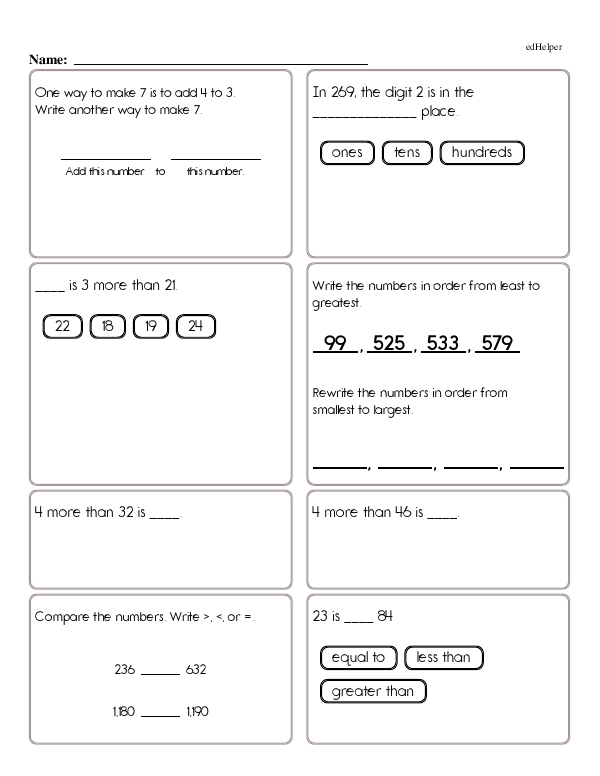 Students encounter problems designed to build their number sense and strengthen their understanding of place value. For example, they could work on problems that ask them to identify the value of digits in different positions within a three-digit number, such as determining that in the number 472, the digit 4 represents 400. Another type of problem could involve ordering a set of three-digit numbers from smallest to largest.