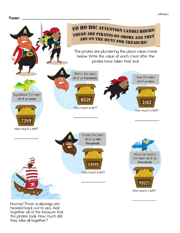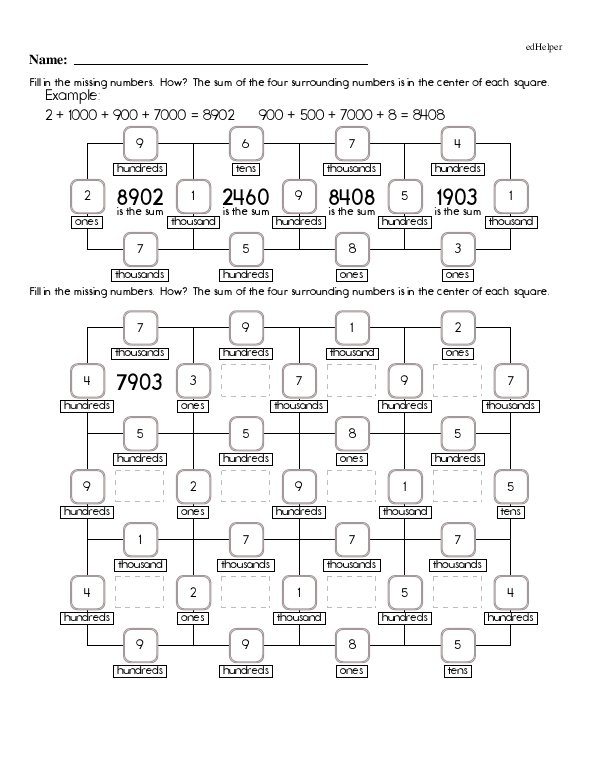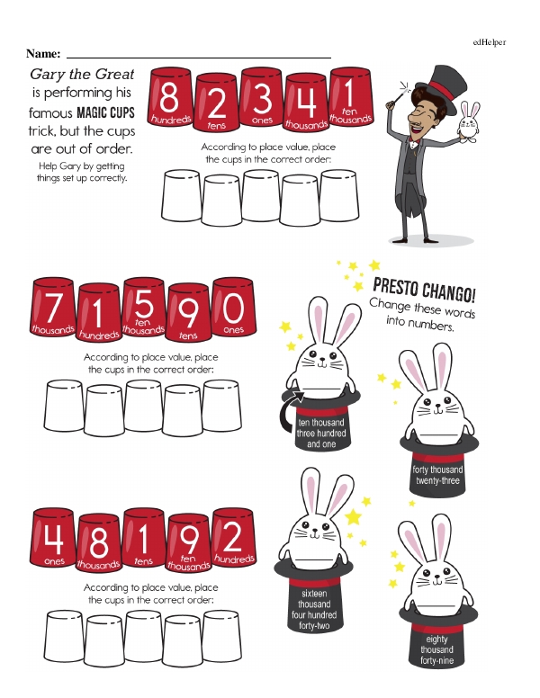 The workbook "Numbers to 10,000" continues practice on place value. It emphasizes thousands, hundreds, tens, and ones, helping students understand the significance of each digit in a number up to 10,000. Next, students should learn to read, write, compare, and order numbers within this range, which can involve numeral, word, and expanded forms. The chapter also introduces rounding numbers to the nearest ten, hundred, and thousand, fostering estimation skills. Teachers should incorporate engaging activities such as number line exercises, games, and real-world applications like counting money or measuring distances. Finally, integrating some problem-solving exercises helps students apply their understanding of numbers to practical situations.