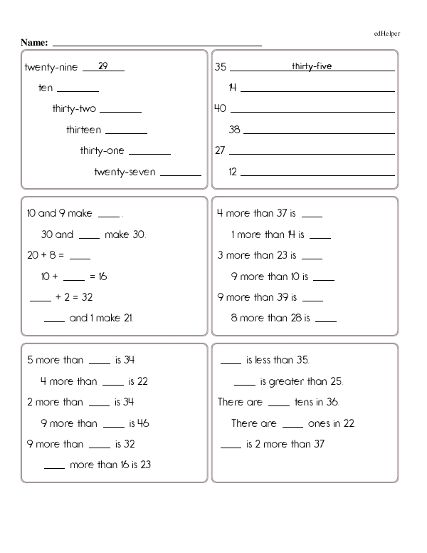 This math chapter workbook on "Numbers to 40" focuses on helping students understand number recognition, counting, and the sequence of numbers up to 40. The workbook includes activities that emphasize reading, writing, and representing numbers in numeral and word form. Comparing numbers (greater than, less than, equal to) is included, alongside simple addition and subtraction practice within 40 to build arithmetic skills. Engaging students with games, songs, and interactive resources is recommended to make learning enjoyable and effective.