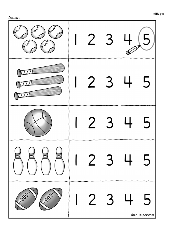 A problem might present a picture of three apples and two oranges, asking the student to count the apples or compare which fruit has more. Another example could be a set of boxes with different numbers of stars, prompting children to match all boxes with 5 stars.