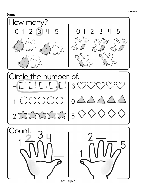This math chapter workbook on "Numbers to 5" lets kids practice recognizing, counting, and writing the numbers 0 through 5. The teacher should introduce students to counting objects up to five, helping them understand the concept of quantity and one-to-one correspondence. Visual representations, such as using fingers, blocks, or number lines, can enhance comprehension. Engage students in activities that develop number recognition and formation by practicing writing the numerals. Simple exercises comparing numbers to determine more or less or identifying sets with the same number of items can further solidify their understanding.