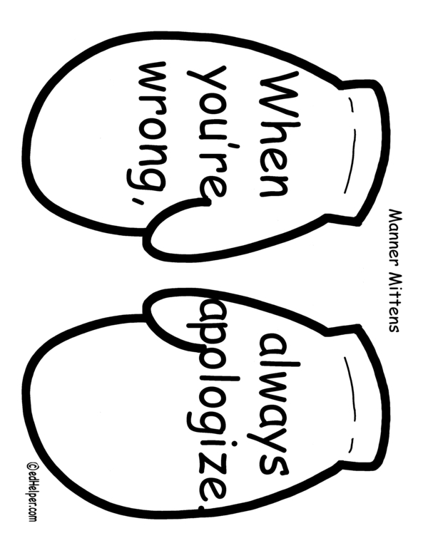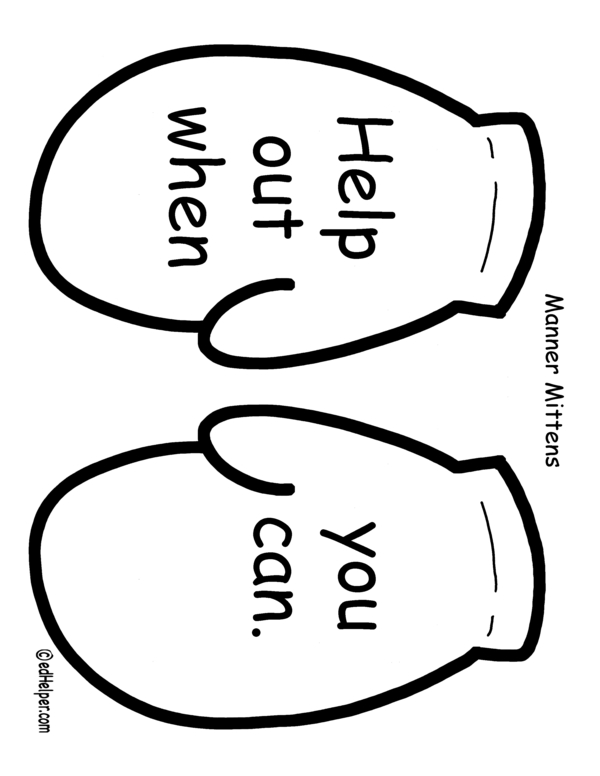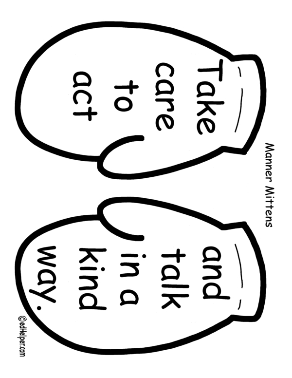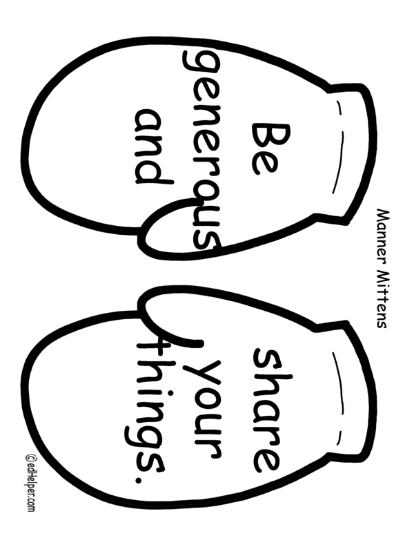 Mittens come in pairs, and so do good manners! Tape the string of "Mitten Manners" on the wall, and below it, add another string for a matching game. Kids can work individually or in small groups to match the mittens to form sentences about good manners. Use this hands-on activity to encourage students to share how they plan to put these thoughtful actions into practice every day.