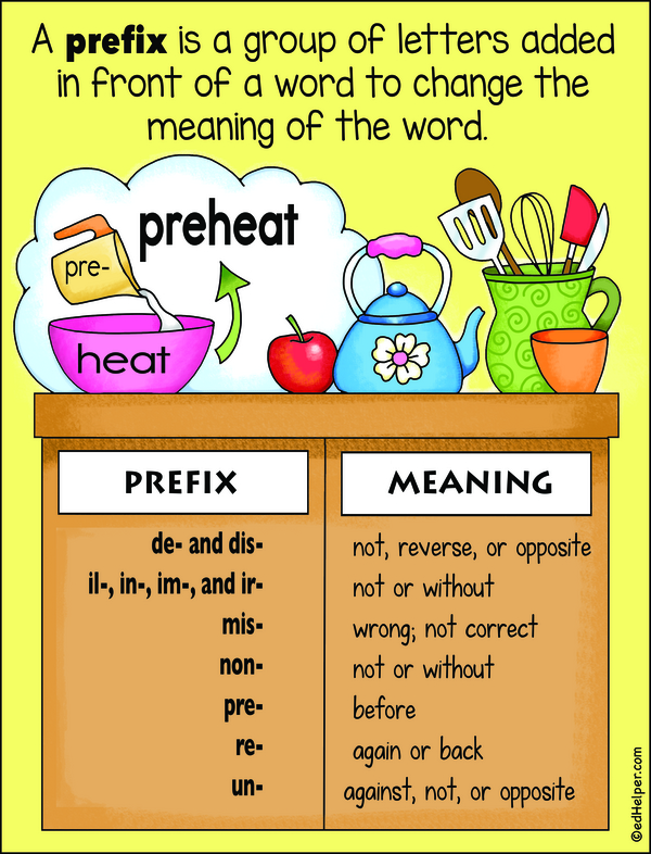These two engaging poster pages delve into the concept of prefixes, providing a comprehensive overview of their function in English. The first page introduces what a prefix is, explaining how these small additions to the beginning of a root word can significantly alter its meaning. The second page continues the lesson by listing a variety of common prefixes along with their meanings, such as "un-" for "not," "re-" for "again," and "pre-" for "before." Each prefix is accompanied by example words to illustrate their use, making it easier for readers, especially students, to grasp and remember.