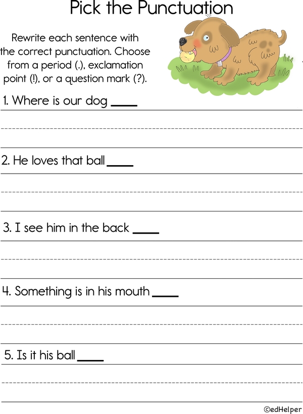 Every sentence needs to end with a punctuation mark. Use a period if the sentence tells something or gives information. Use an exclamation point if it shows excitement or a strong feeling. Use a question mark if it asks something. Your challenge today is to pick the right punctuation marks and rewrite the sentences. Grab your pencil, and let's get started!
