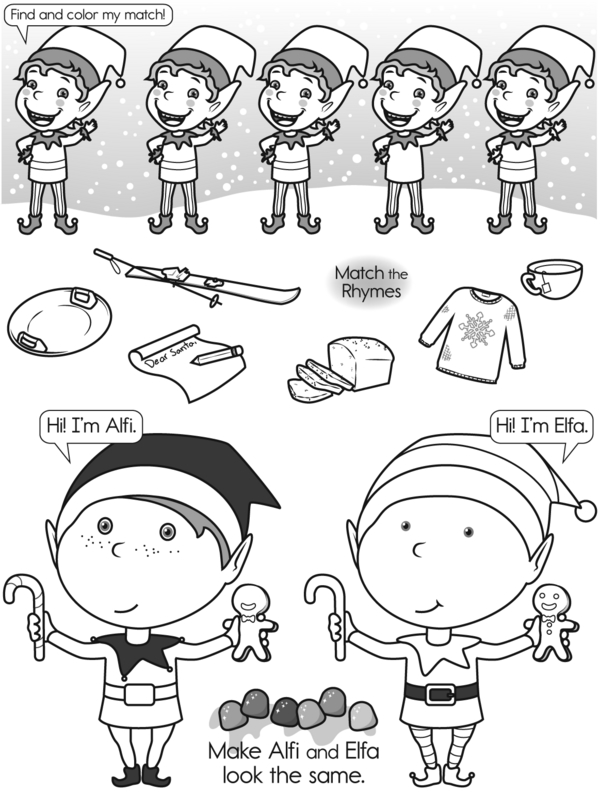 Maze and match, that's what this workbook is all about! First, help Ricky Recycler clear this maze of addition and subtraction puzzles. Then, find the matching elves and pair up the rhymes. Before you go, draw and shade so Alf and Elfa look the same.