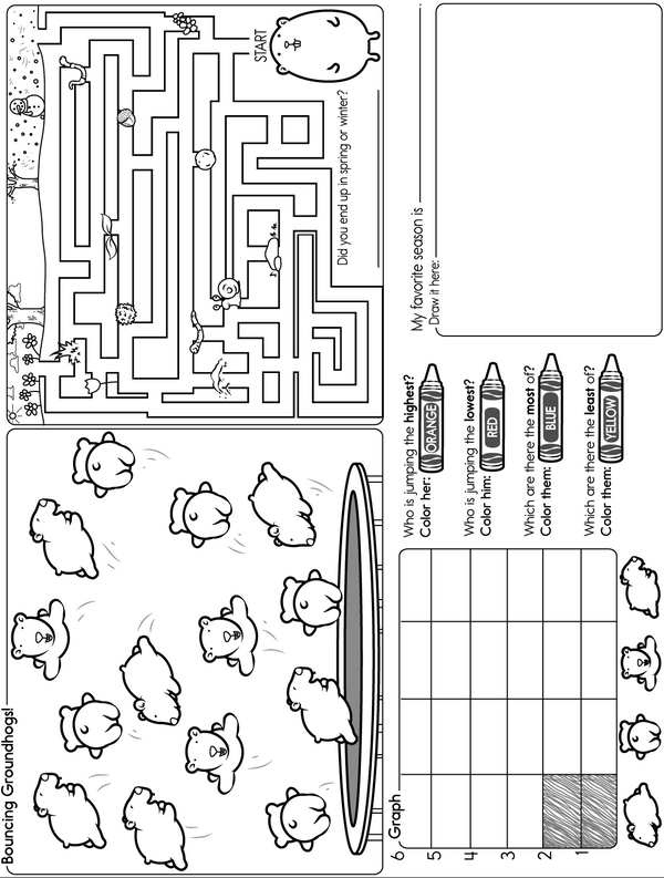 Welcome to Puzzle Mania! Get ready to count, add, make pairs, and cross the odd ones out. But wait, there's more! You'll also create a graph, clear a maze, and draw your favorite season. Grab your pencil and crayons, and let the fun begin!