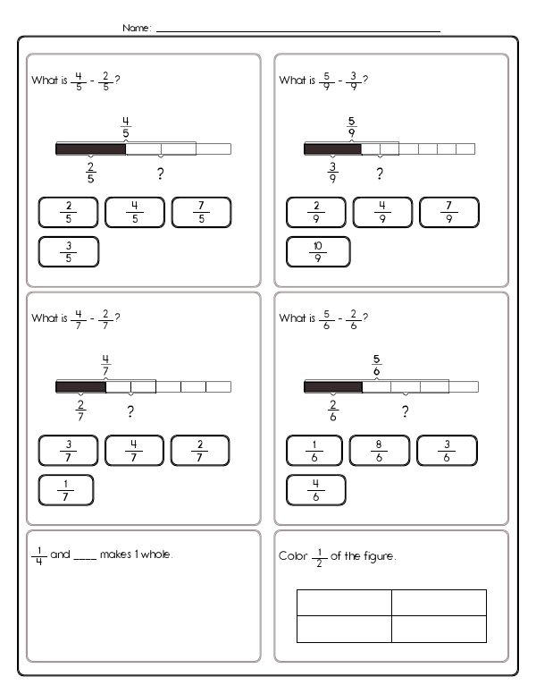 This workbook helps kids enhance their understanding of fractions by applying common core skills such as identifying, comparing, and performing basic operations with fractions using visual models. Students will practice key concepts like addition and subtraction of fractions, recognizing equivalent fractions, and comparing fractional sizes.