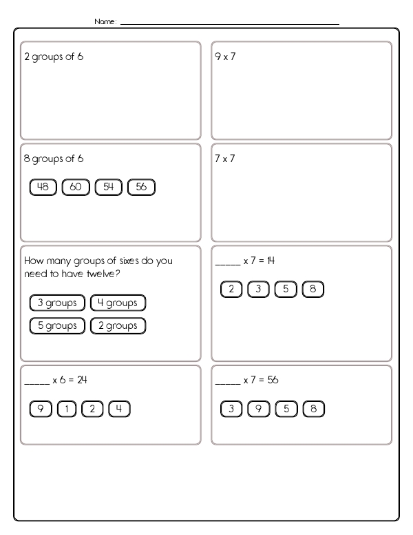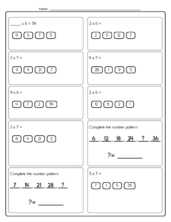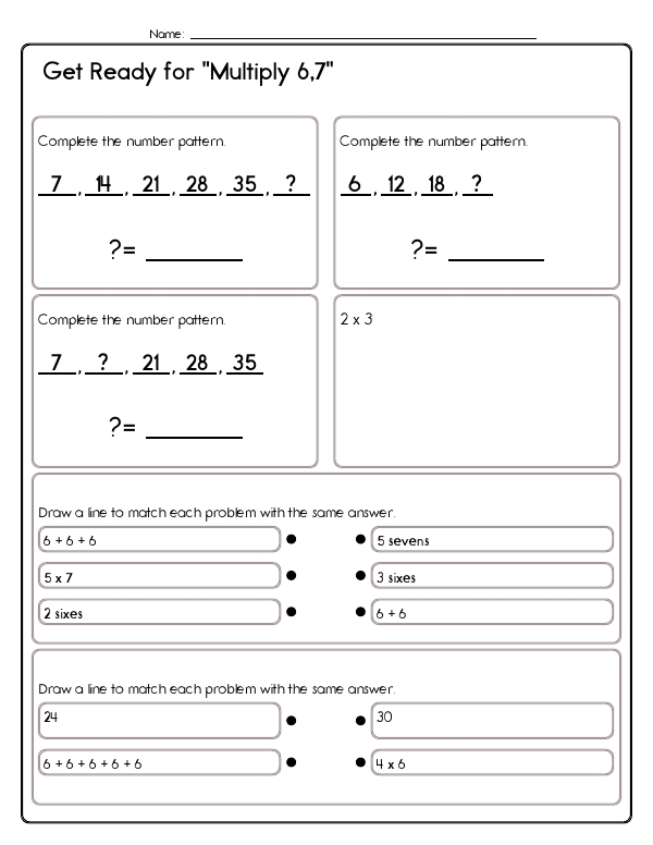Now that kids have already mastered multiplying by 1, 2, and 10, as well as multiplying by 3, 4, and 5, this math assessment workbook allows them to continue their multiplication mastery practice multiplying by 6 and 7. Students tackle pattern sequences, explore multiplication with sixes and sevens, and connect numerical relationships in innovative ways. Through a combination of pattern puzzles, multiple-choice questions, and connection problems, students master their times tables and develop their problem-solving skills. Teachers can quickly identify gaps and provide targeted practice by using separate math assessments for different number sets. Common Core skills include 2.NBT.2 for skip counting, 2.OA.4 for repeated addition and arrays, and 3.OA.1 for understanding multiplication.
